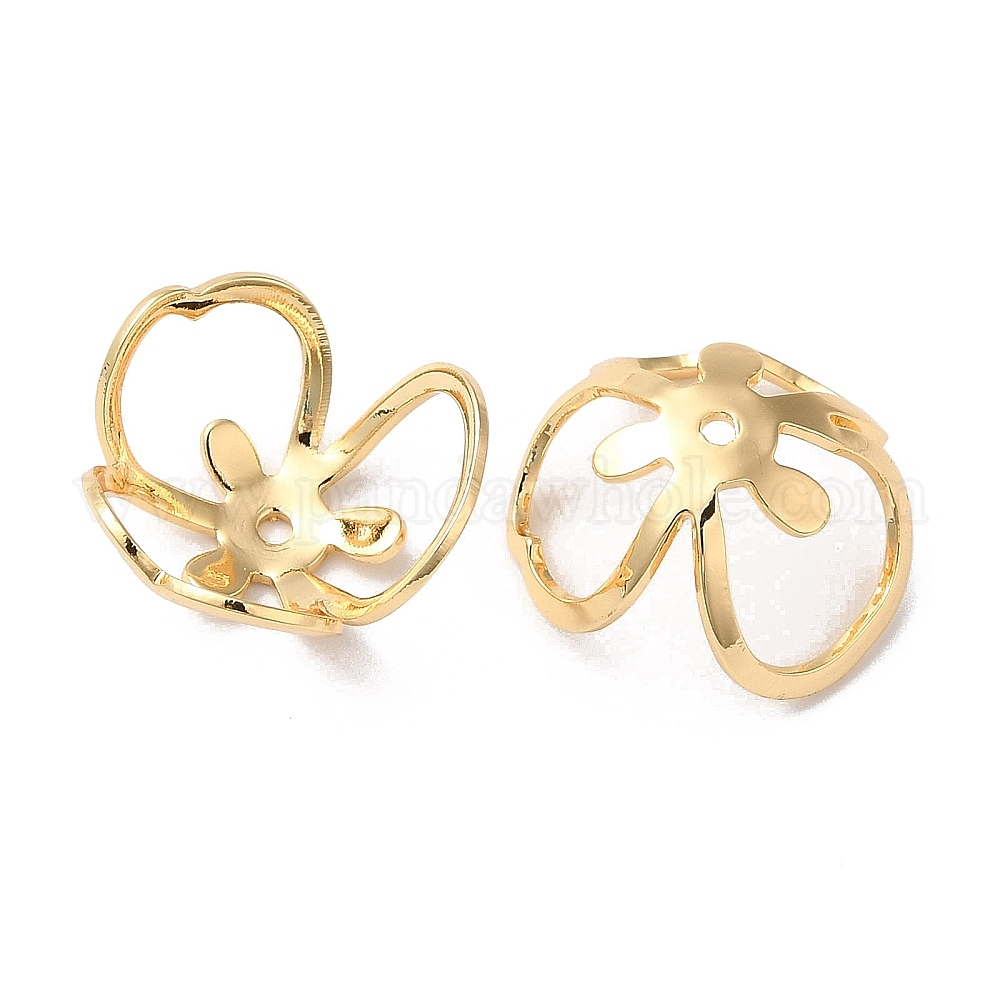 Шапочки и конусы для бусин, латунные, без кадмия, без никеля и без свинца, 3-лепестков цветка