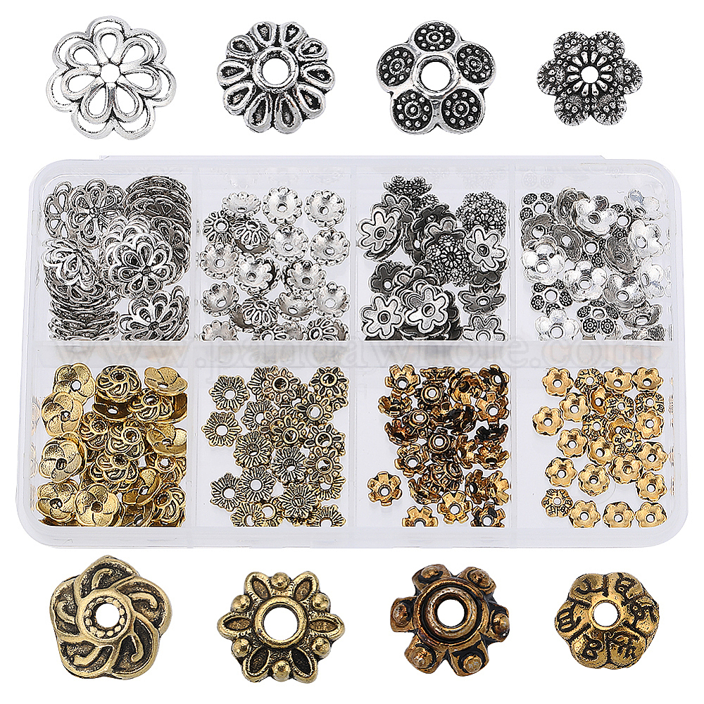240шт 8 стили тибетские колпачки для бусин, цветок