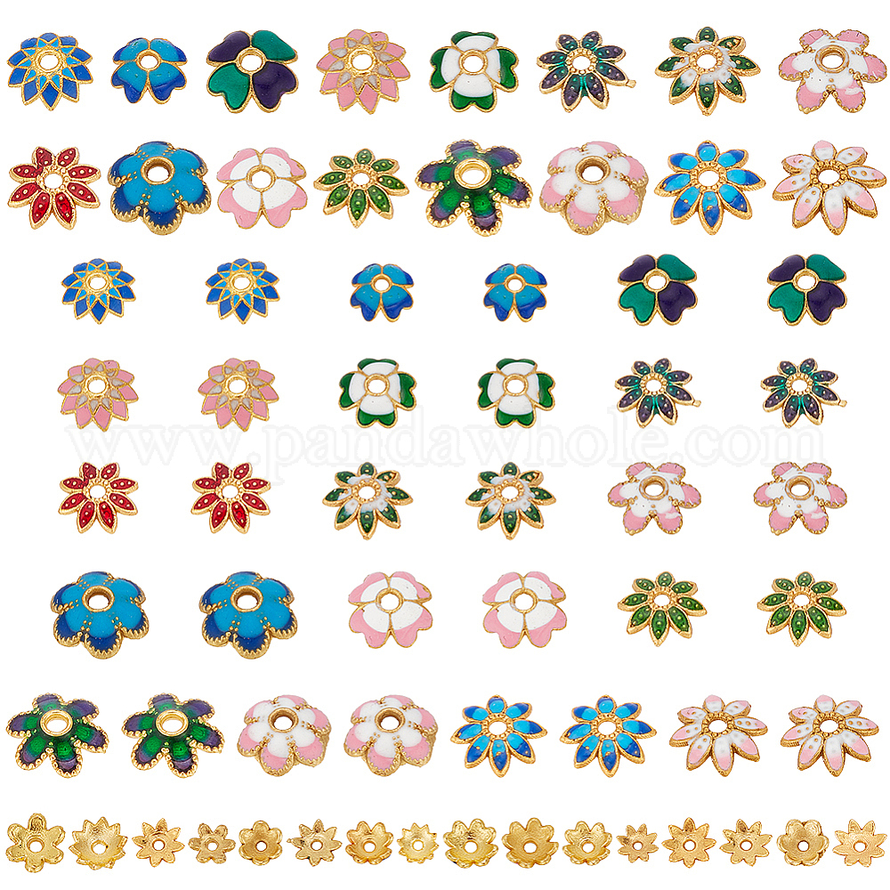 96шт 16 стили многолепестковые колпачки из сплава эмали, без кадмия и без свинца, золотые, цветок