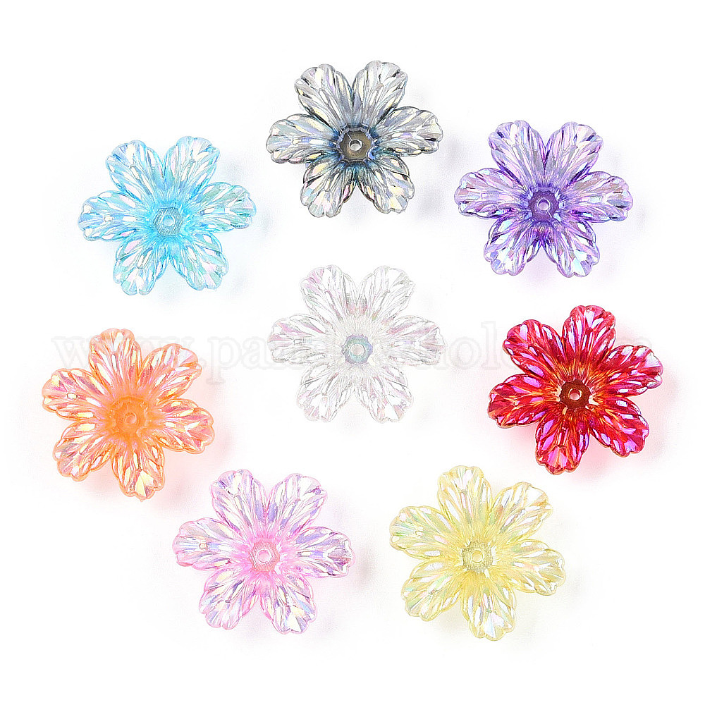 Прозрачные колпачки акриловая бисера, с покрытием AB цвета, цветок