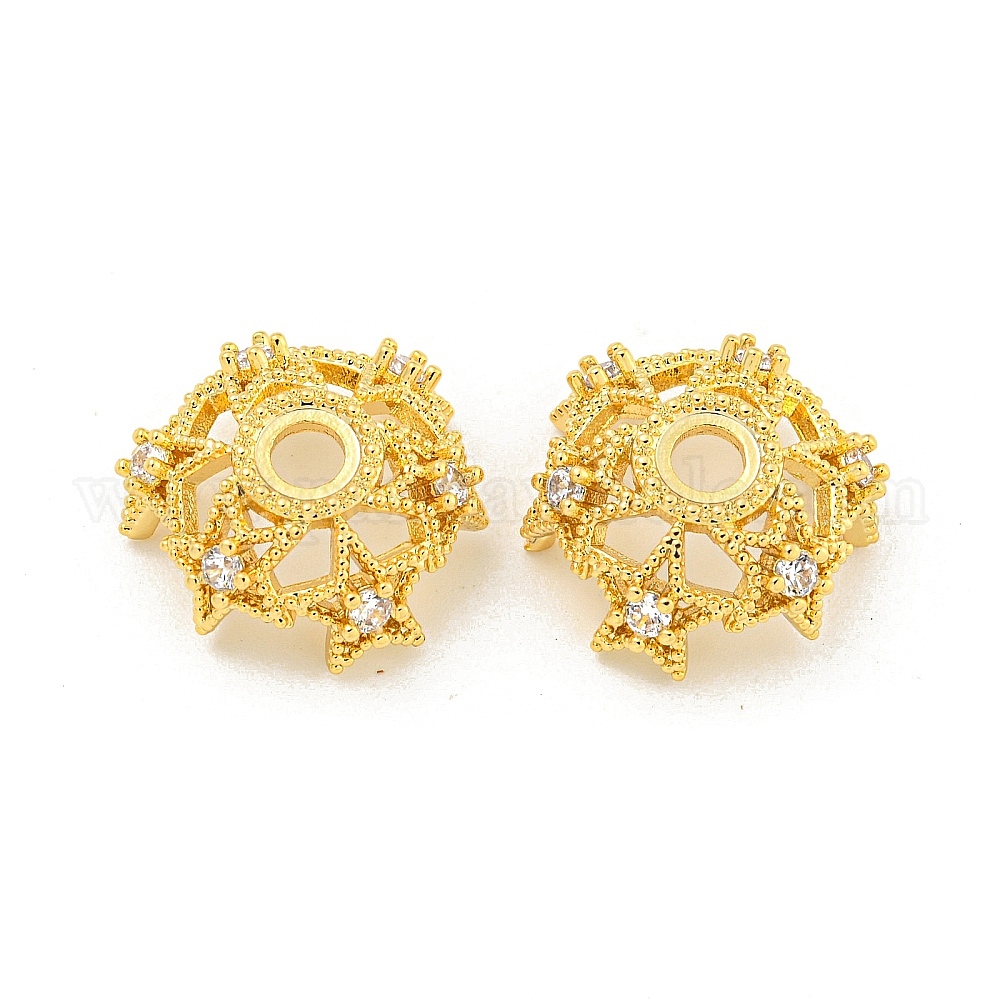 Латунные колпачки для бусин из микропаве с кубическим цирконием, 6-лепестков цветка
