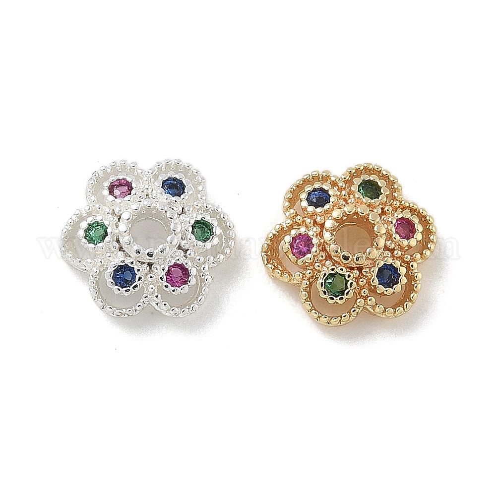 • Серебро Латунные микро проложить кубического циркония Шапочки, долговечный, 6-лепестки, цветок, серебряные, 8x2.5 мм, отверстие : 1.5 мм