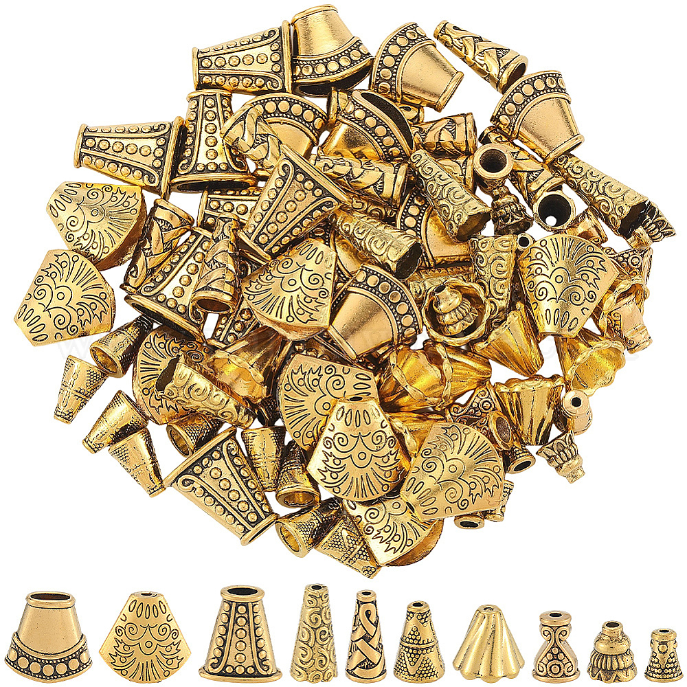 • Античное Золото 100шт 10 стили сплав бусина конус, античное золото , 8~18x5~19x5~9 мм, отверстие : 1.5~5.5 мм, 10 шт / стиль