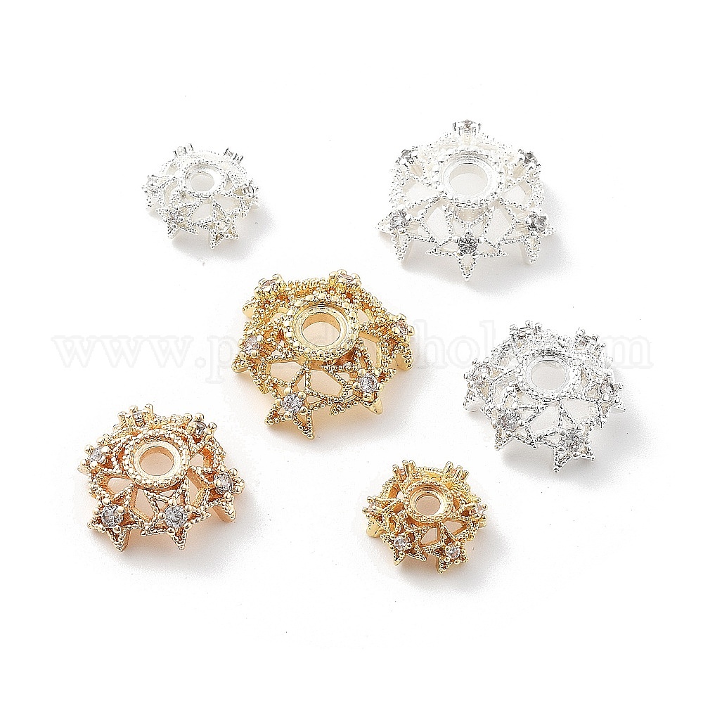 Колпачки для бусин из прозрачного кубического циркония из латуни, долговечный, стойки покрытие, цветок