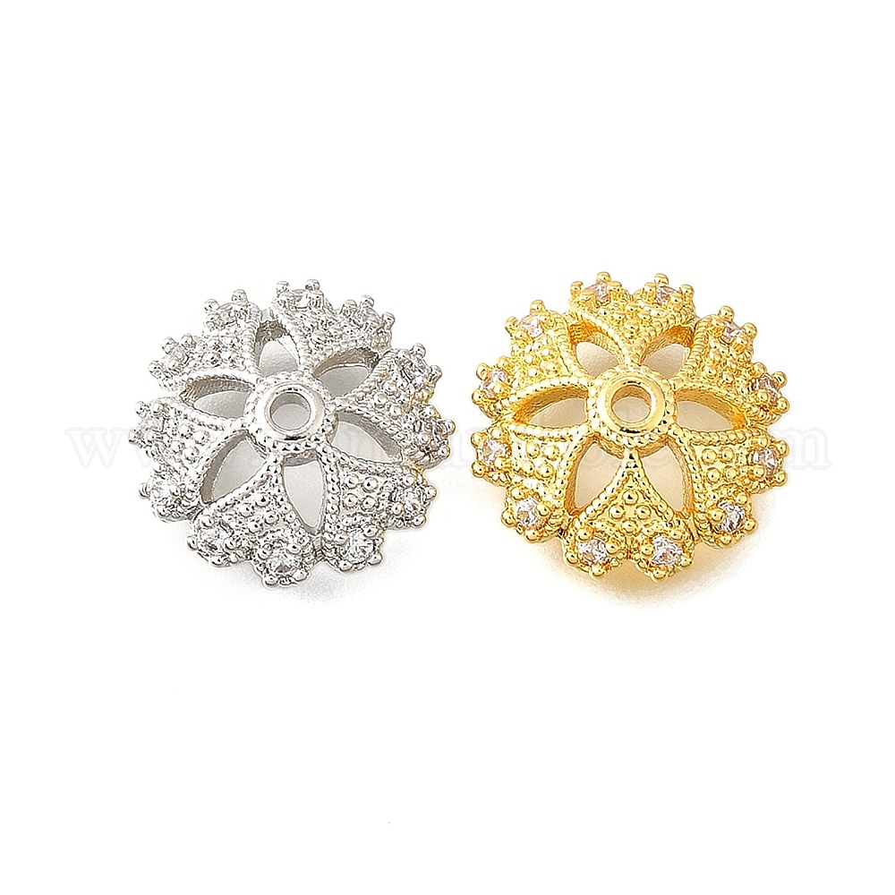 Колпачки для бусин из прозрачного кубического циркония в форме цветка из латуни, долговечный, без кадмия и без свинца, стойки покрытие