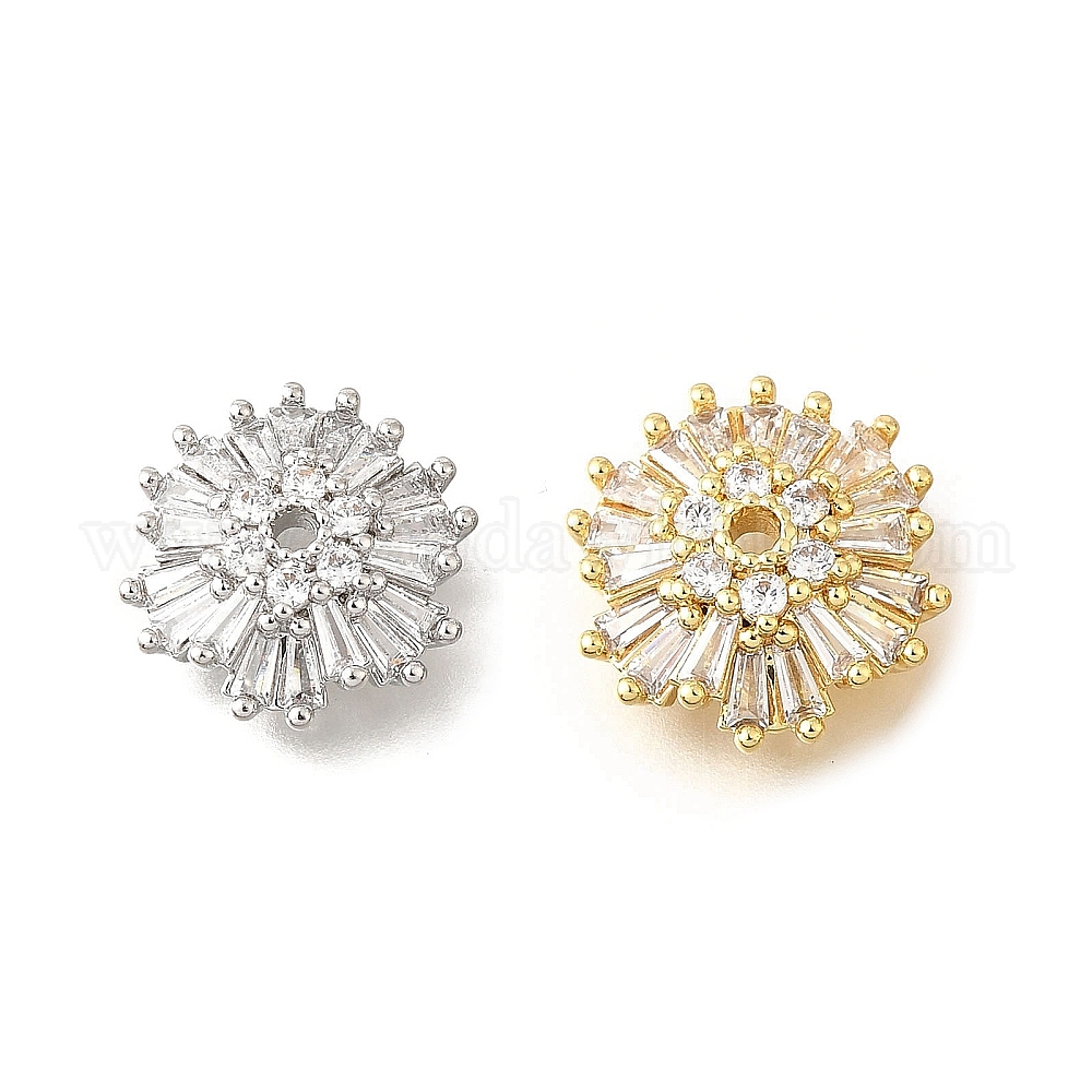 Колпачки для бусин из прозрачного кубического циркония в форме цветка из латуни, долговечный, без кадмия и без свинца, стойки покрытие