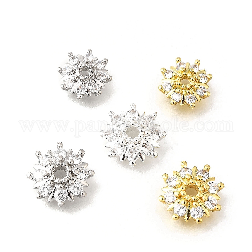 Колпачки для бусин из прозрачного кубического циркония в форме цветка из латуни, долговечный, без кадмия и без свинца, стойки покрытие