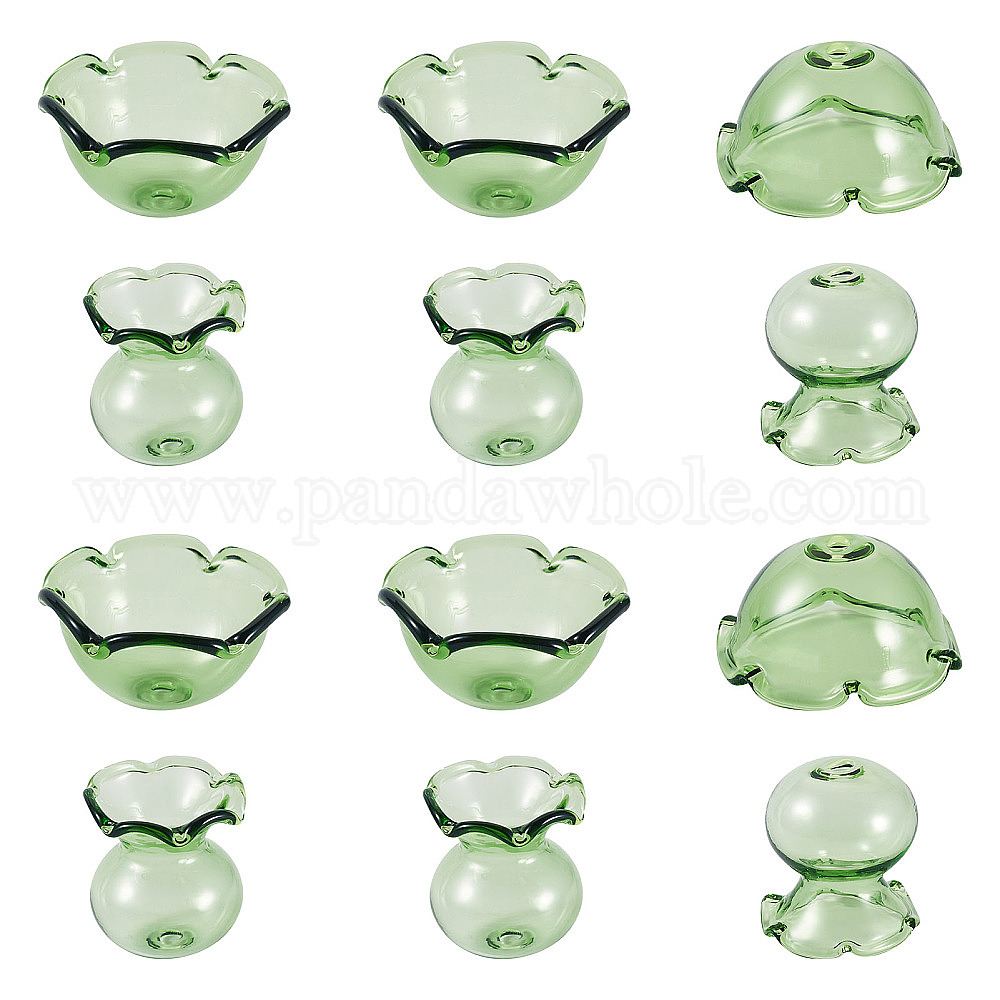 • Зеленый 6 наборы прозрачных стеклянных колпачков, мульти-лепесток цветка, для изготовления колокольчиков, зелёные, 22.5x20.5 мм, отверстие : 2 мм