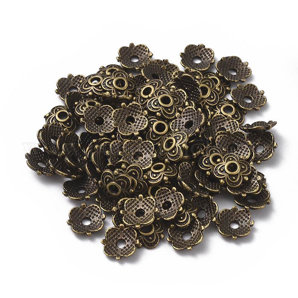 4 -petal тибетский стиль сплава цветок крышки шарика, без кадмия и без свинца, 8x8x2 мм, отверстие : 2 мм