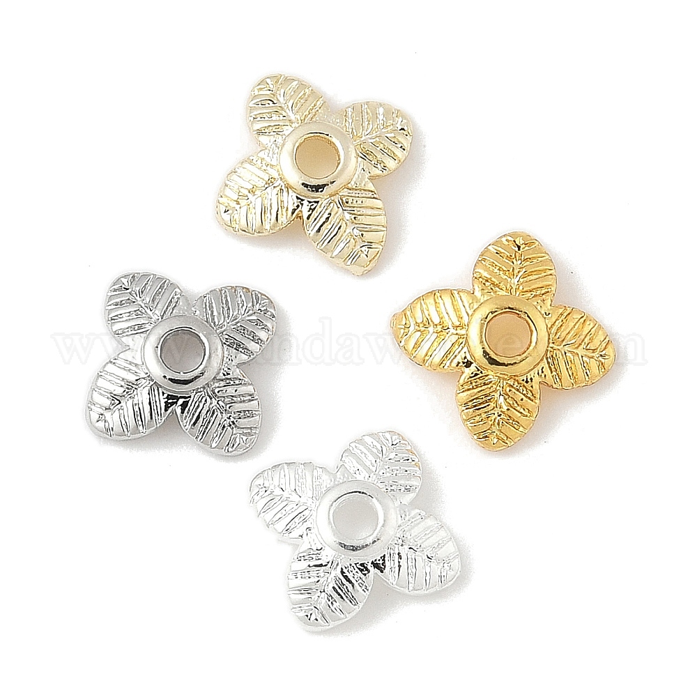 Шапочки и конусы для бусин, латунные, 4-лепестков цветка