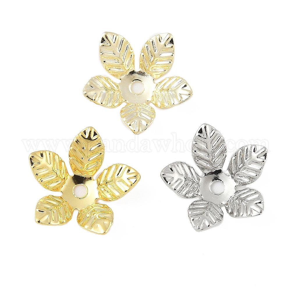 Шапочки и конусы для бусин, латунные, 5-лепестков цветка