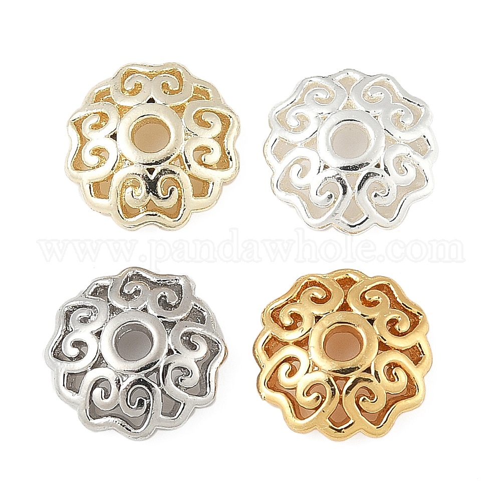 • Посеребрённый Шапочки и конусы для бусин, латунные, цветок, 925 серебро покрытием, 8.5x8.5x2.5 мм, отверстие : 1.6 мм