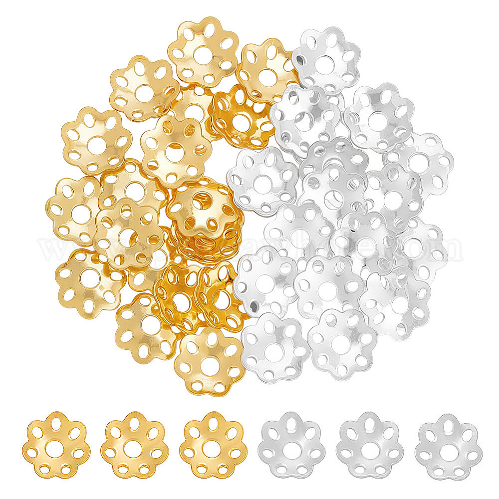 40 шт. 2 цвета 925 колпачки для бусин из стерлингового серебра, мульти-лепесток цветка