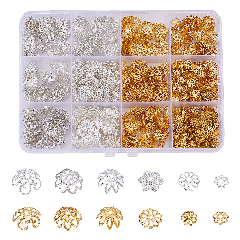 колпачки для бусин из цветочного железа: 6x1мм, отверстие : 1 мм, 2 цветов, 300 шт / цвет, 600шт;