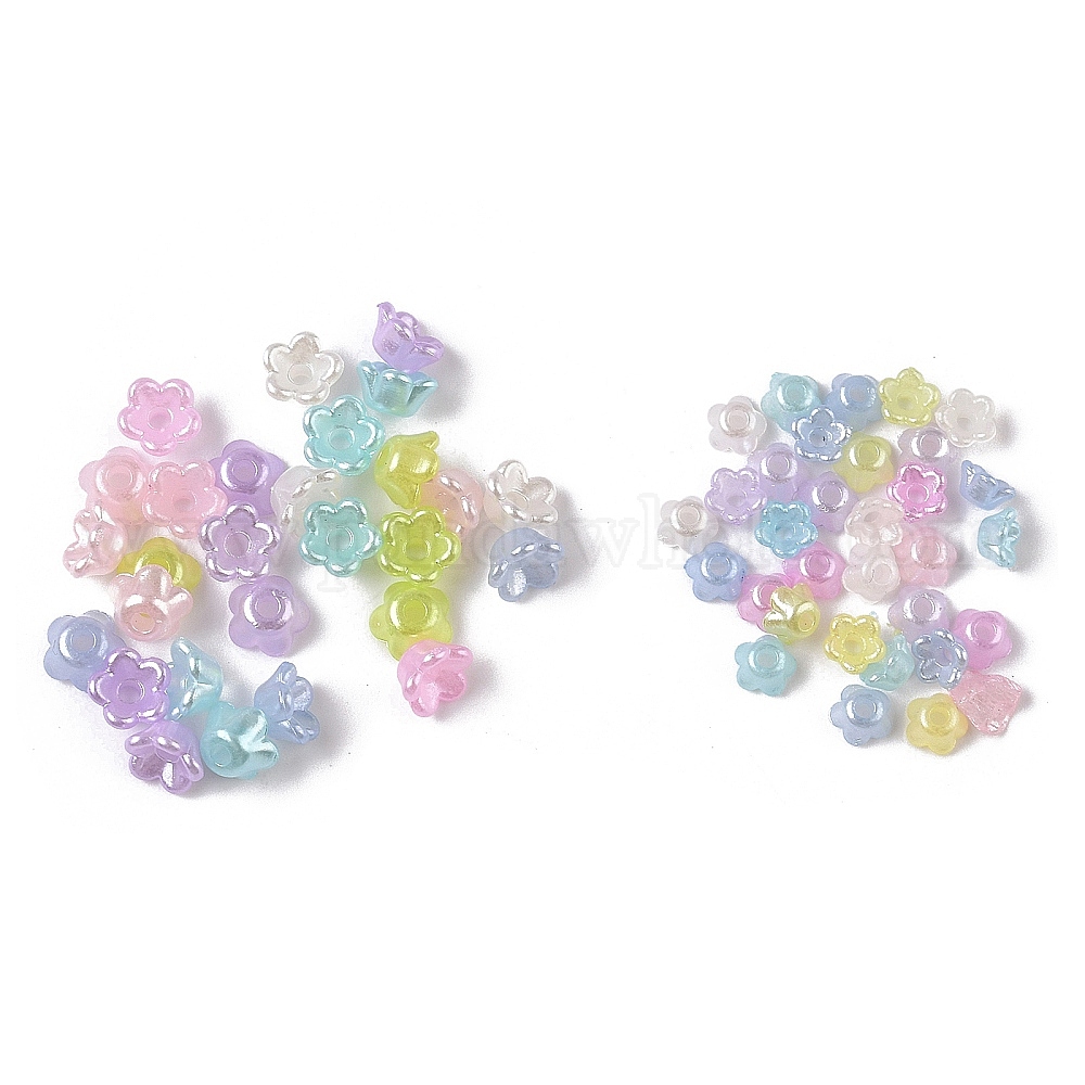 • (52) Непрозрачная лаванда Колпачки из перламутрового АБС-пластика, цветок, разноцветные, 4.5x4.5x2.5 мм, отверстие : 1.2 мм, Около 20000 шт / 500 г