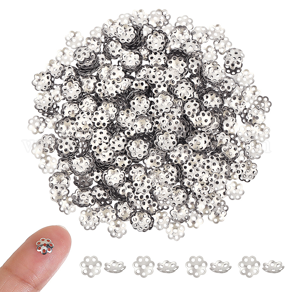 • Нержавеющая Сталь Цвет 1000шт. 316 колпачки из хирургической нержавеющей стали, цветок, 7-лепесток, цвет нержавеющей стали, 6x1 мм, отверстие : 1 мм