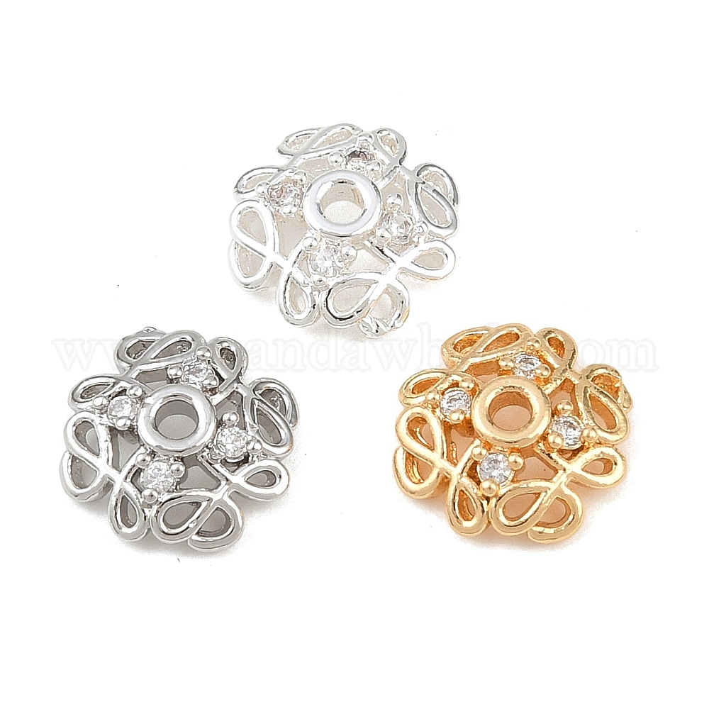 Колпачки для бусин из прозрачного кубического циркония из латуни, цветок