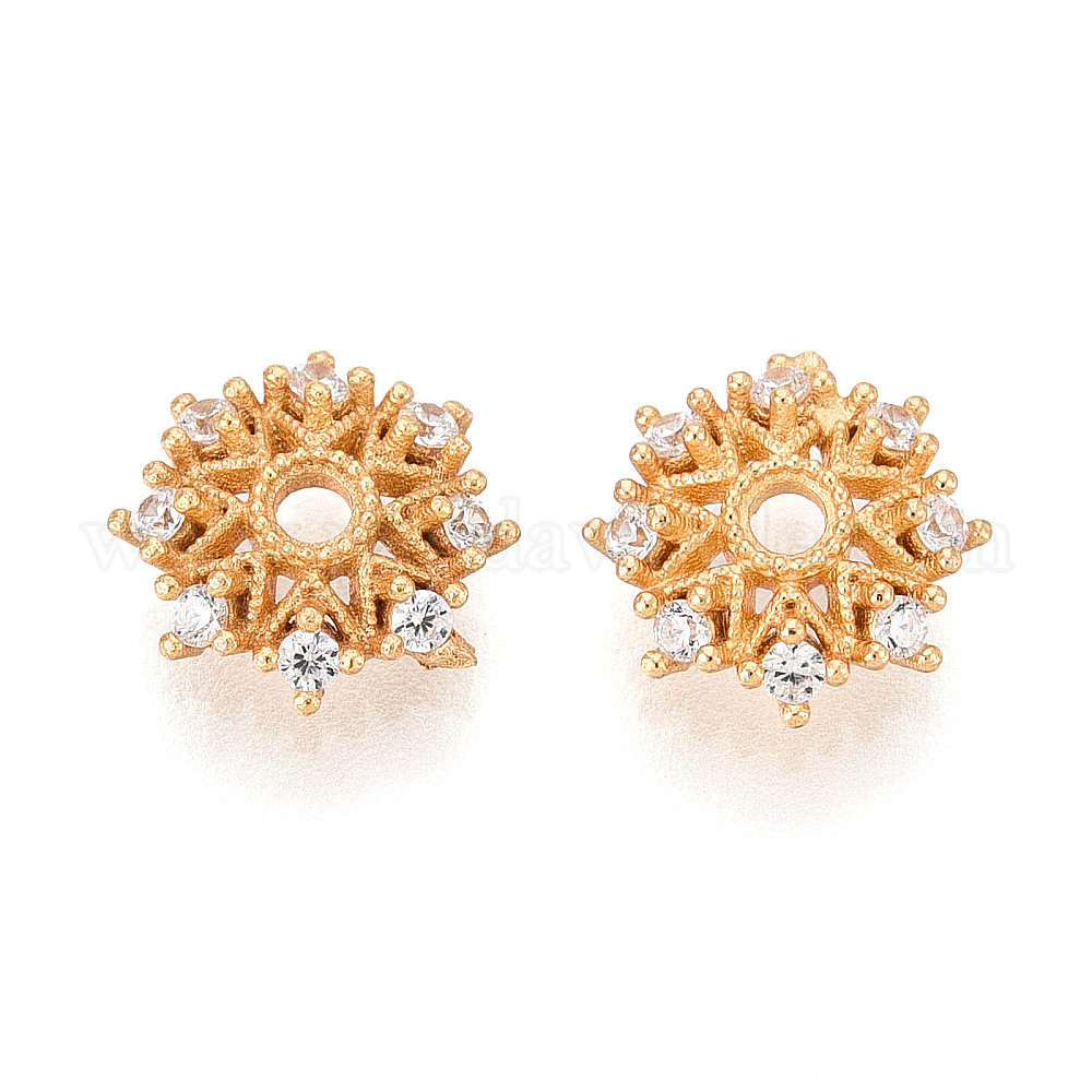 • Настоящее золото 24K 925 бусины-цветы из стерлингового серебра с микропаве из прозрачных кубических цирконий, реальный 24 k позолоченный, 8.5x2.5 мм, отверстие : 1.5 мм
