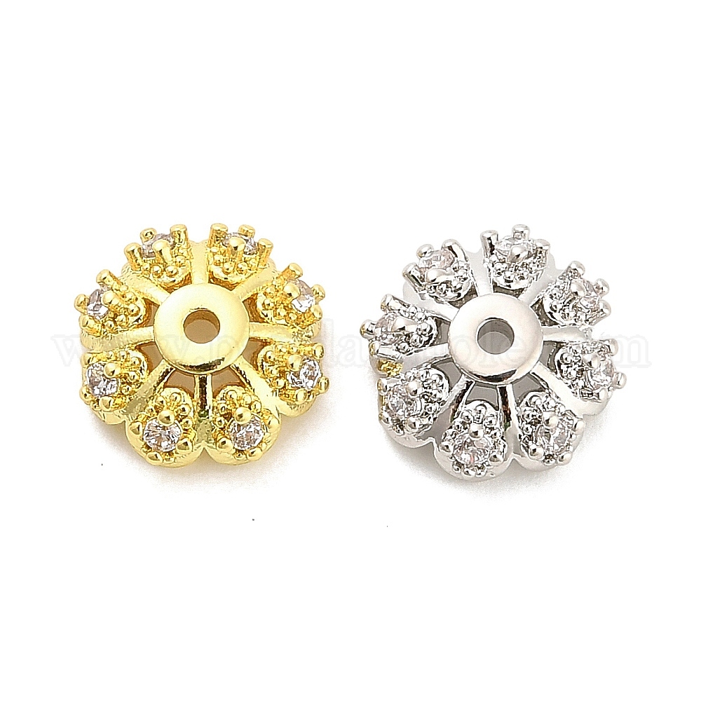 Колпачки для бусин из прозрачного кубического циркония с микропаве из латуни, долговечный, стойки покрытие, без свинца и без кадмия, ионное покрытие (ip)