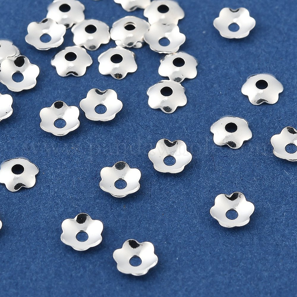 • Серебро Шапочки и конусы для бусин, латунные, без свинца, без кадмии и без никеля, цветок, серебряные, 4x4.3x0.8 мм, отверстие : 1 мм