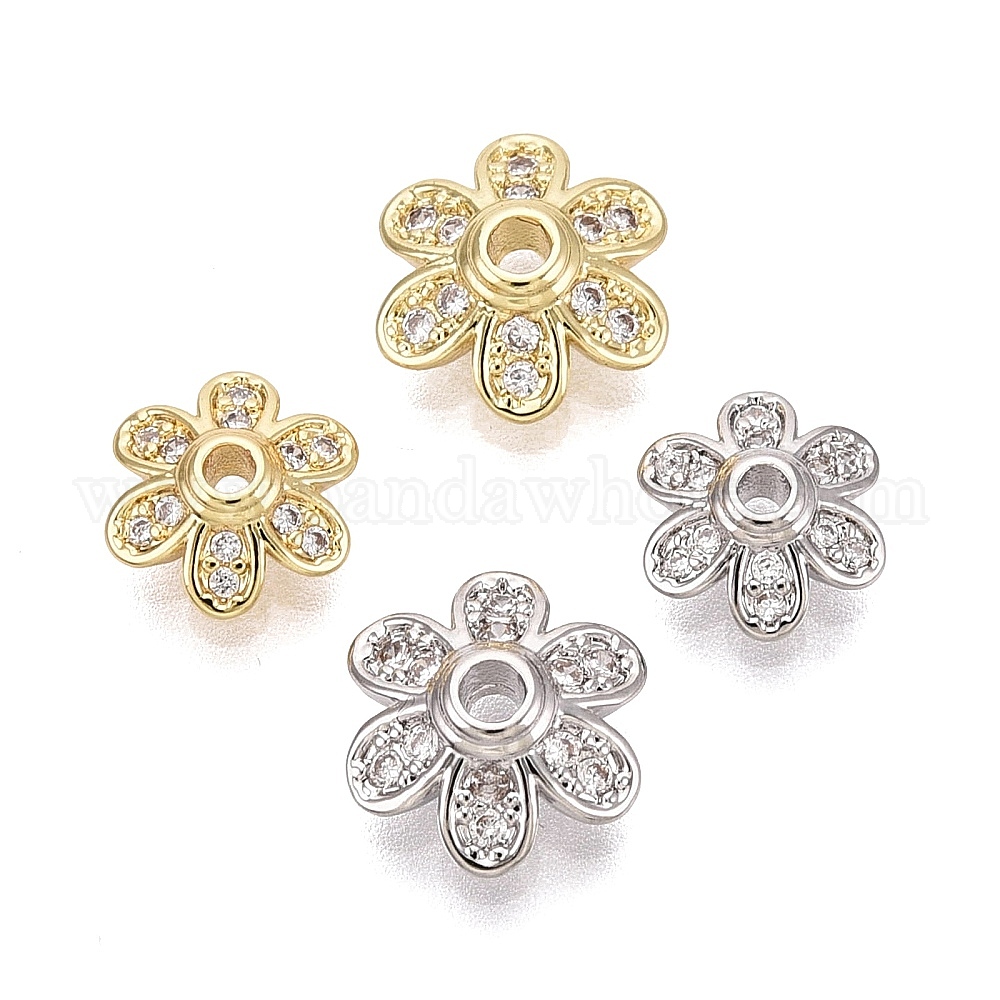 Колпачки для бусин из прозрачного кубического циркония из латуни, цветок