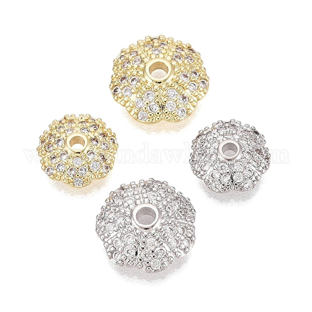 • Платина Колпачки для бусин из прозрачного кубического циркония из латуни, цветок, платина, 10x3 мм, отверстие : 1.5~1.6 мм