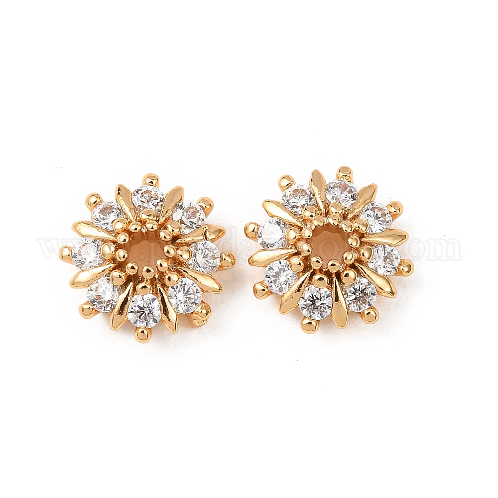 • Настоящее золото 18K Колпачки для бусин из прозрачного кубического циркония из латуни, цветок, реальный 18 k позолоченный, 8.5x8.5x4.5 мм, отверстие : 1.6 мм