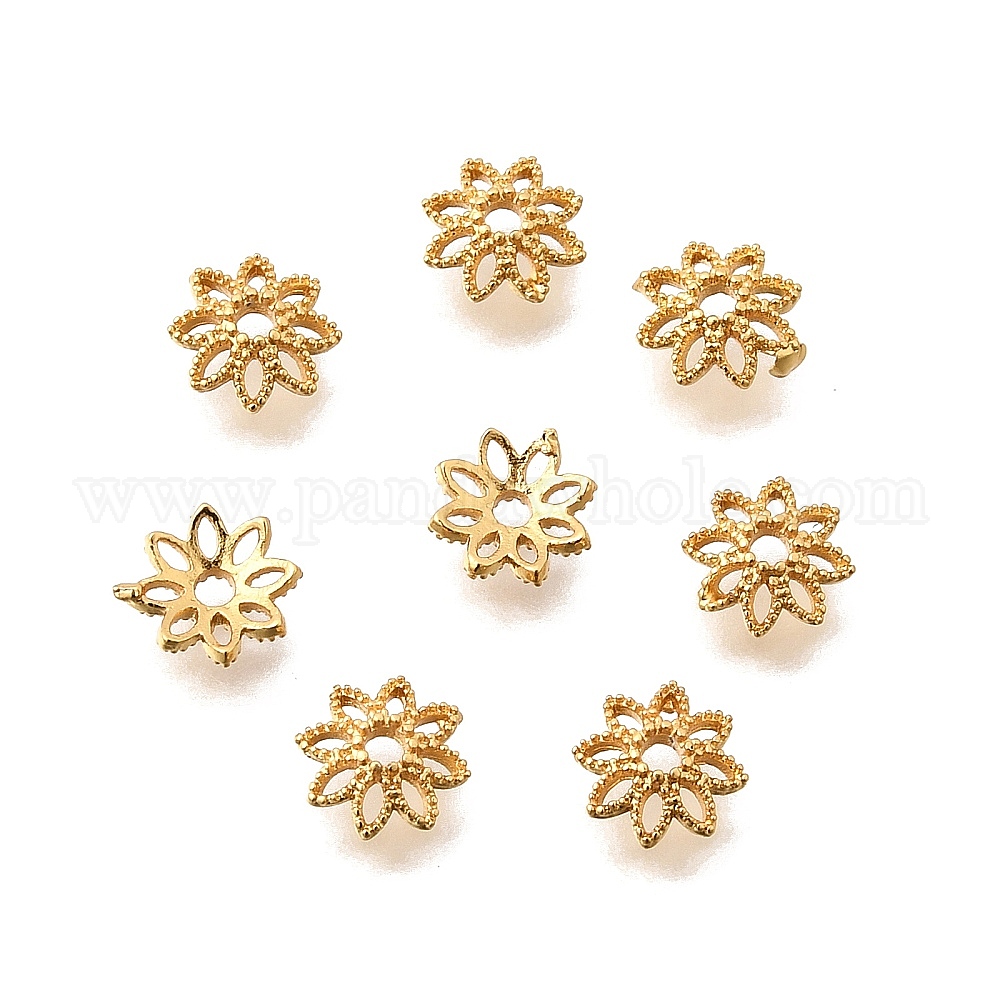 Шапочки и конусы для бусин, латунные, полые цветок, без кадмия и без свинца, стойки покрытие, долговечный