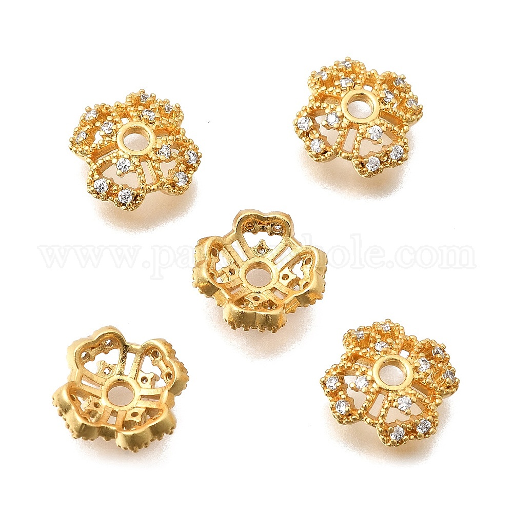 Колпачки для бусин из прозрачного кубического циркония из латуни, Четыре листа клевера, без кадмия и без свинца, стойки покрытие, долговечный