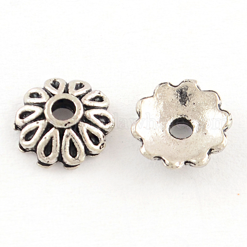 Многолепестковые крышки из бисера из тибетского сплава, без кадмия и без свинца, 8x2.5 мм, Отверстие : 2 мм , около 2775 шт / 1000 г