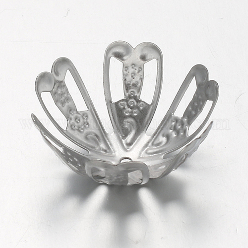 6 -petal 304 из нержавеющей стали цветок крышки шарика,, причудливые шапочки для бус, 26x11 мм, отверстие : 1 мм