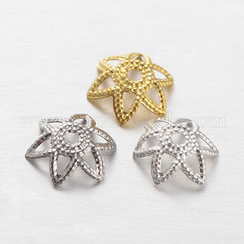 Латунь цветок шарик крышки, причудливые шапочки для бус, 6-лепесток, 7x2 мм, отверстие : 1 мм (00GJDX)