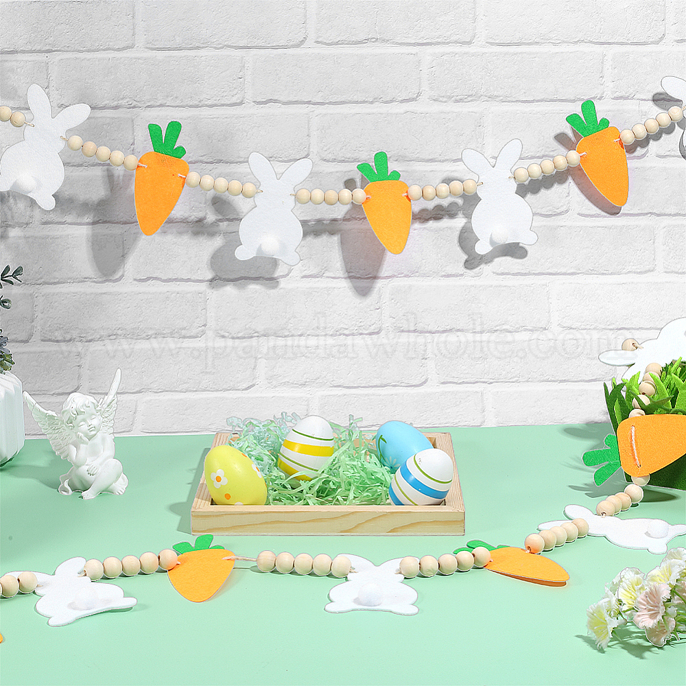 2шт. фетровый кролик морковка и деревянные бусины для подвесных баннеров, украшения для пасхальной вечеринки