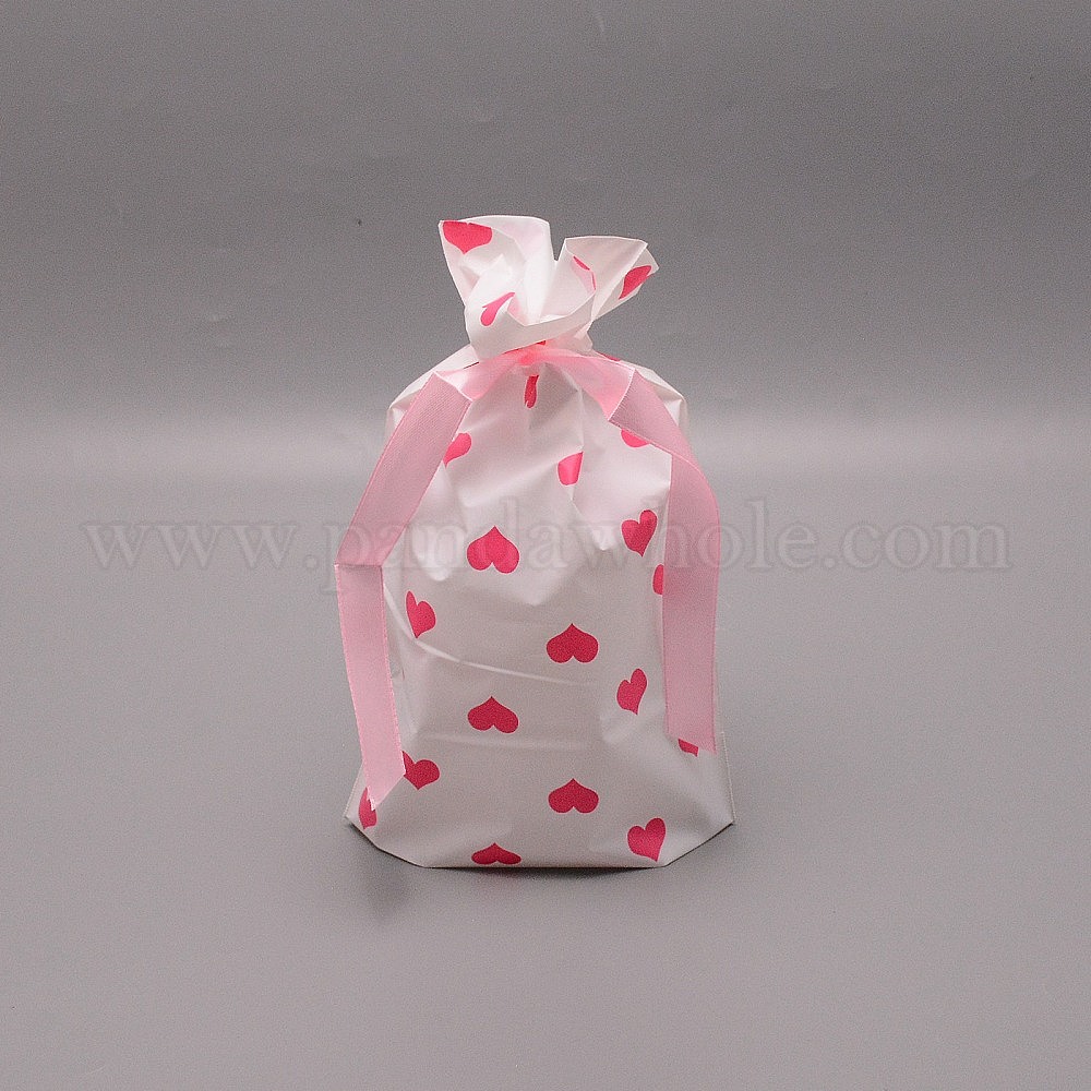 Пластиковые пакеты, сумки на шнурке с лентой, Прямоугольник с сердца шаблона
