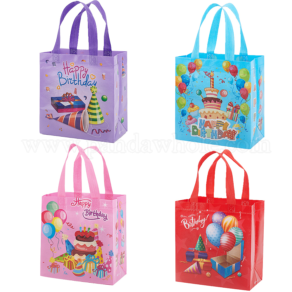 8шт 4 стили нетканый материал многоразовые складные подарочные пакеты с ручкой, переносная сумка для упаковки подарков, прямоугольник с тематикой дня матери / цветочным / мультяшным рисунком / рисунком на тему дня рождения