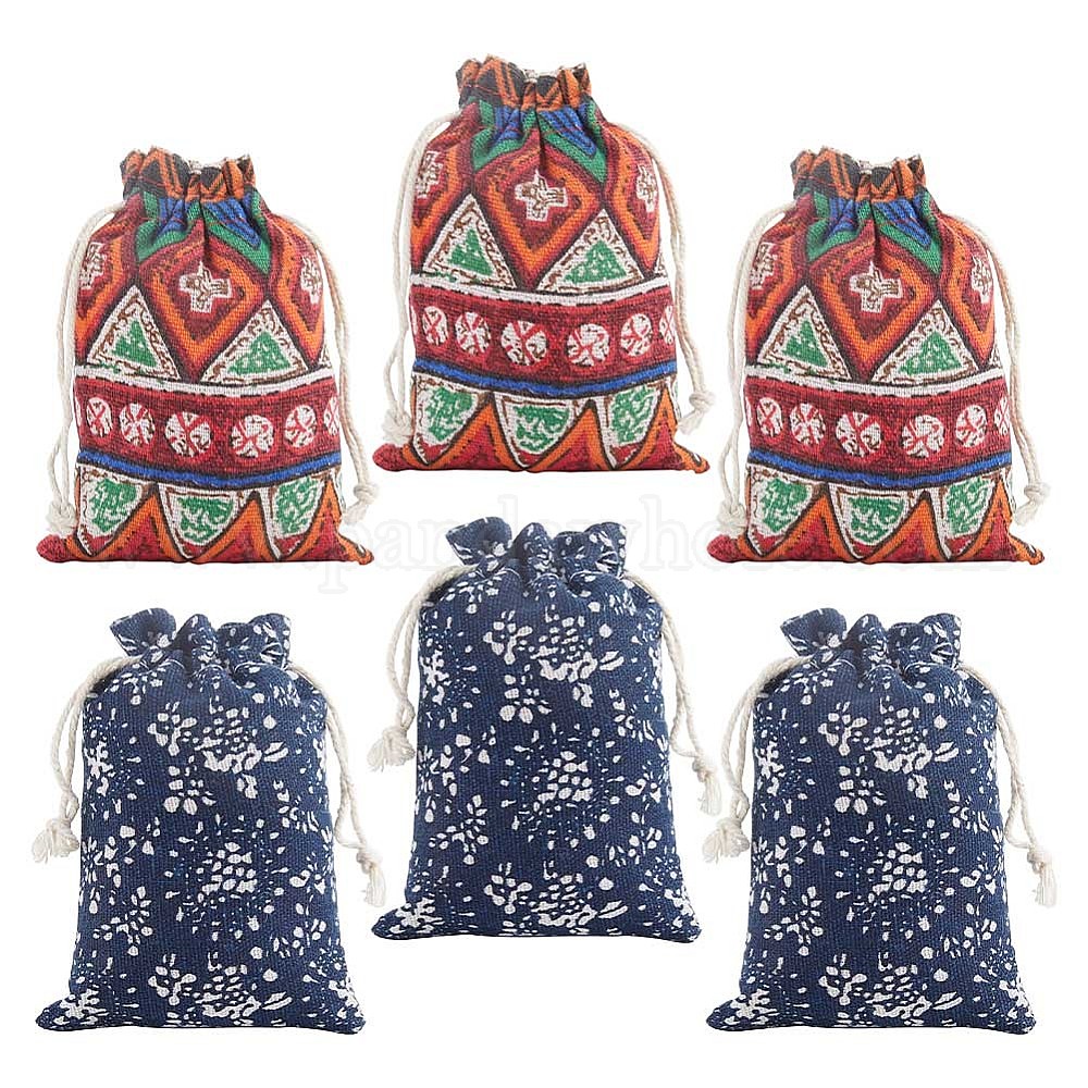 20 шт 2 цвета винтажная хлопковая ткань упаковочные мешочки сумки на шнурке, прямоугольник с волнистым и цветочным узором