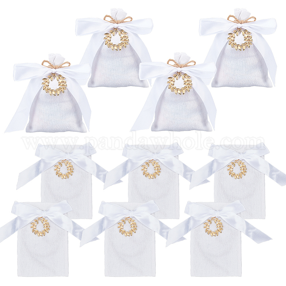 Прямоугольные сумки из полиэстера с кулиской, с атласной лентой и подвесками из сплава золотистого цвета в виде листьев