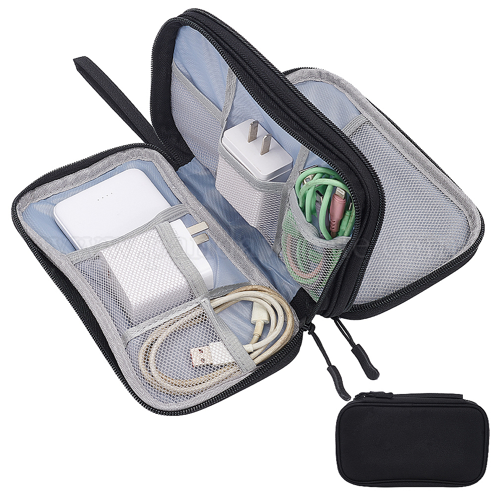 Двухслойная сумка-органайзер для электронных устройств из полиэстера, портативные водонепроницаемые чехлы для хранения кабеля на молнии, для кабеля, зарядное устройство, телефон, наушник, косметика, прямоугольные