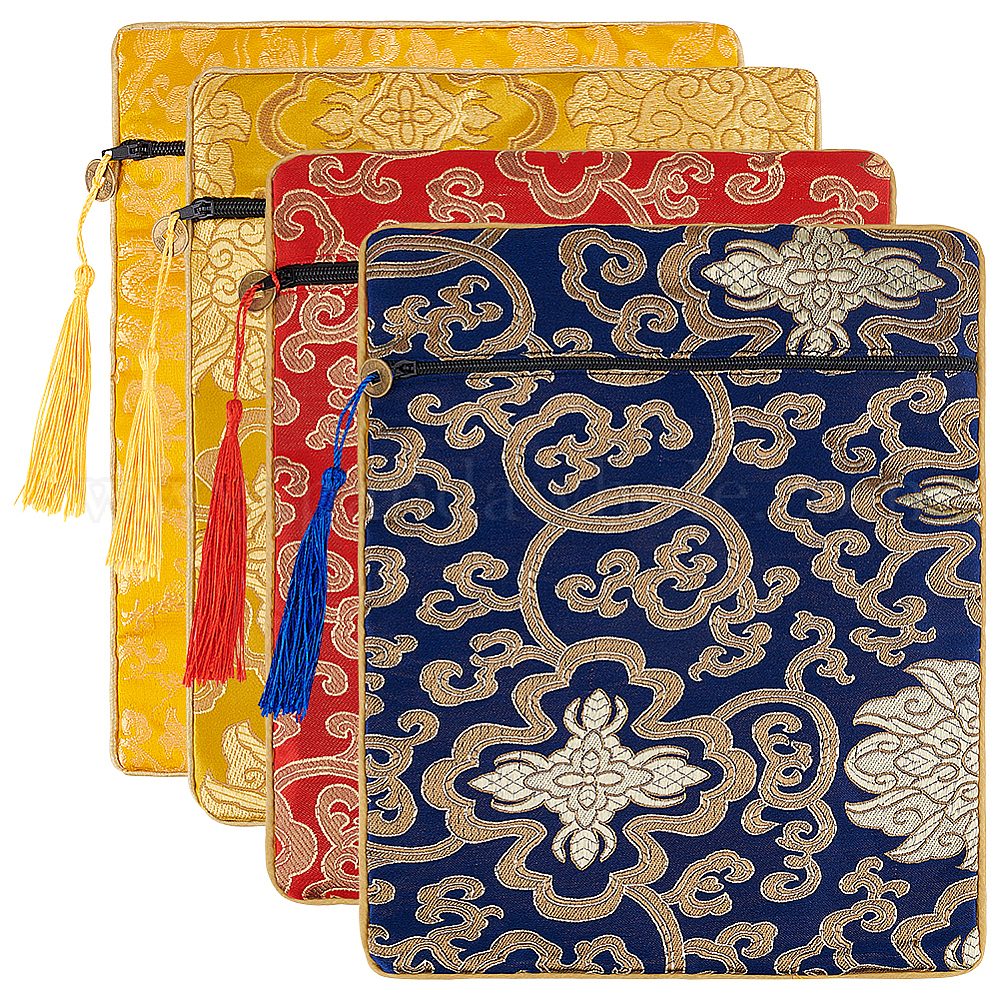 4 шт 4 цвета этнический стиль шелковая книга сутры сумка на молнии, сумки с кисточками для хранения Священных Писаний, прямоугольник с цветочным узором