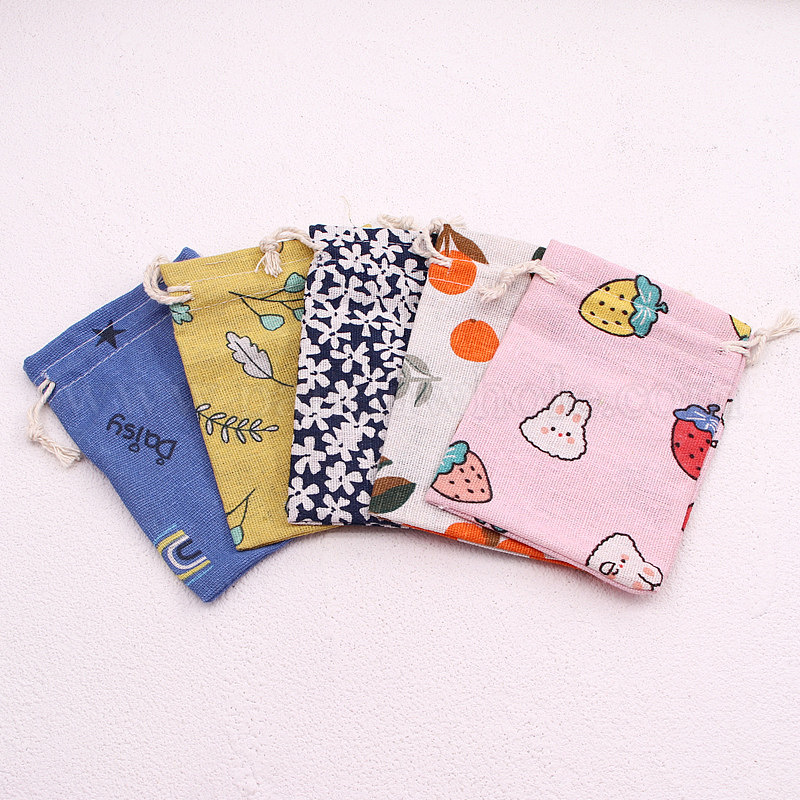 Мешочки для хранения из хлопчатобумажной ткани с принтом, прямоугольные сумки на шнурке, для подарочных пакетов с конфетами (02PMES)