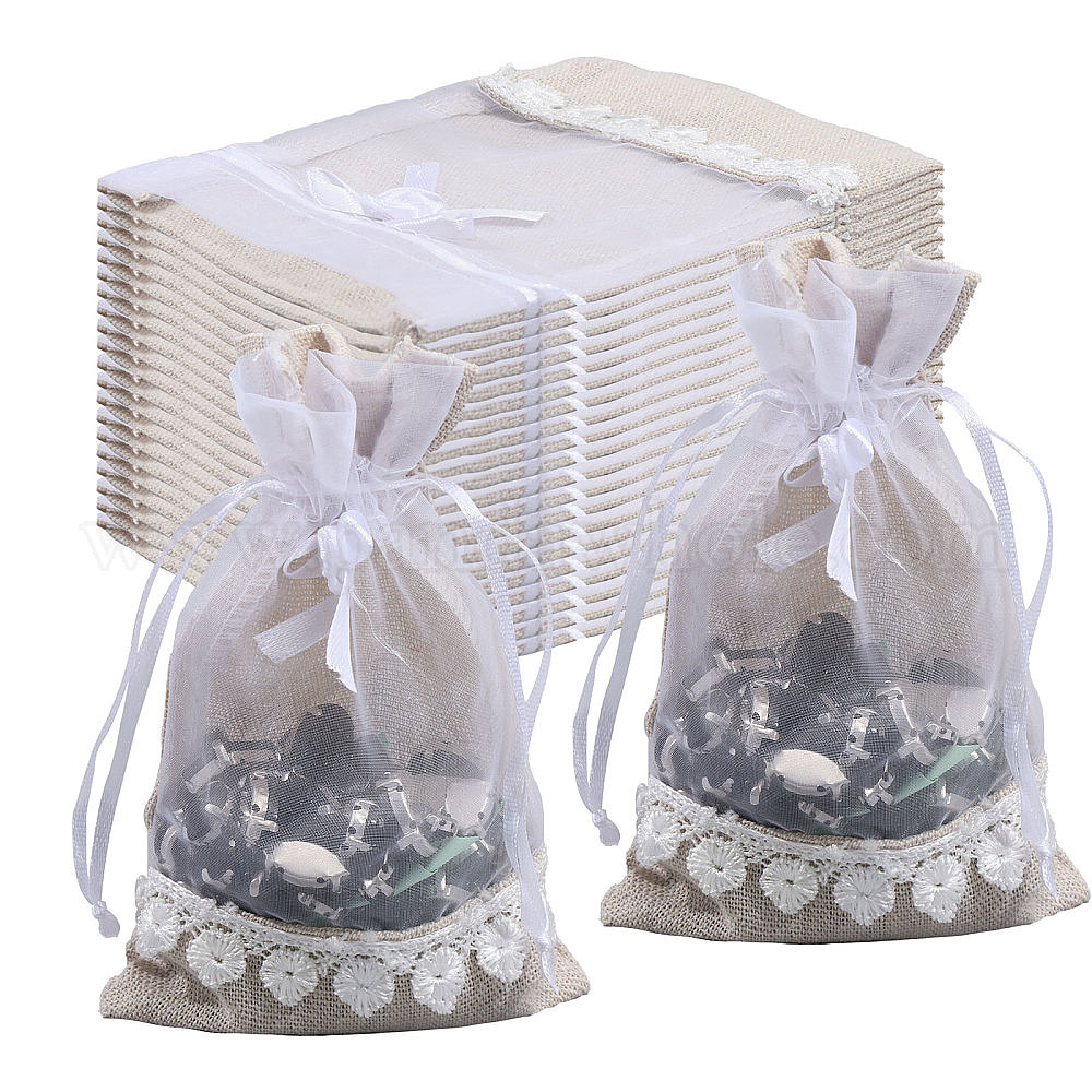Мешочки для хранения из мешковины и органзы, прямоугольные сумки на шнурке с бантом