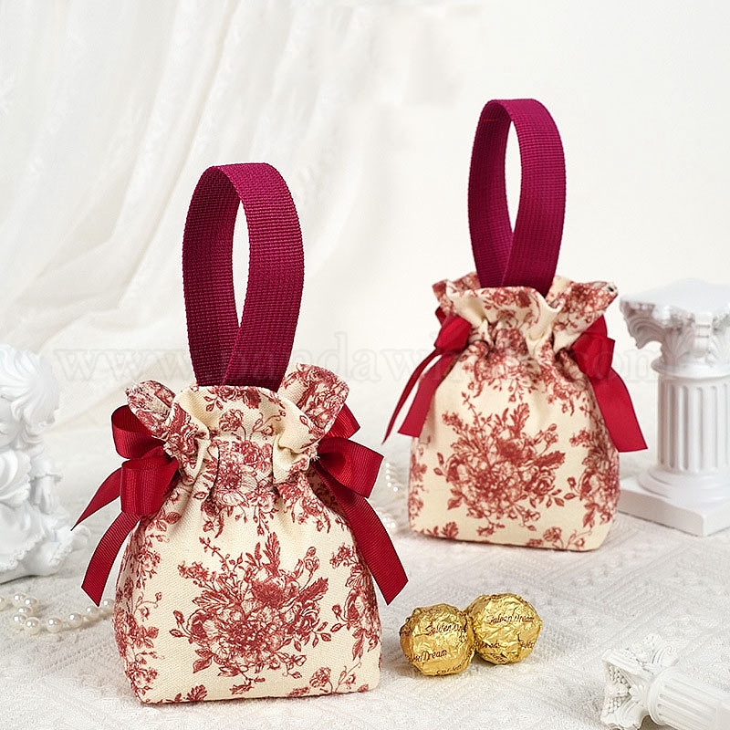 Портативный тканевый свадебный подарочный пакет, мешок для упаковки подарков на день рождения с цветочным узором