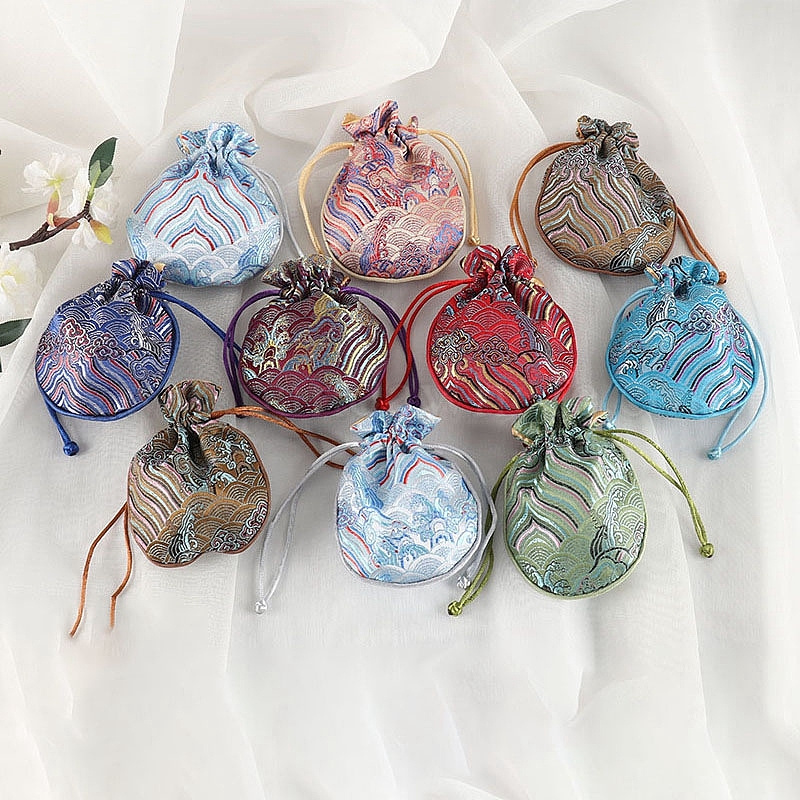 Шелковые сумки на шнурке, подарочная упаковка ювелирных изделий мешок для сережек упаковка браслета, плоско-круглые