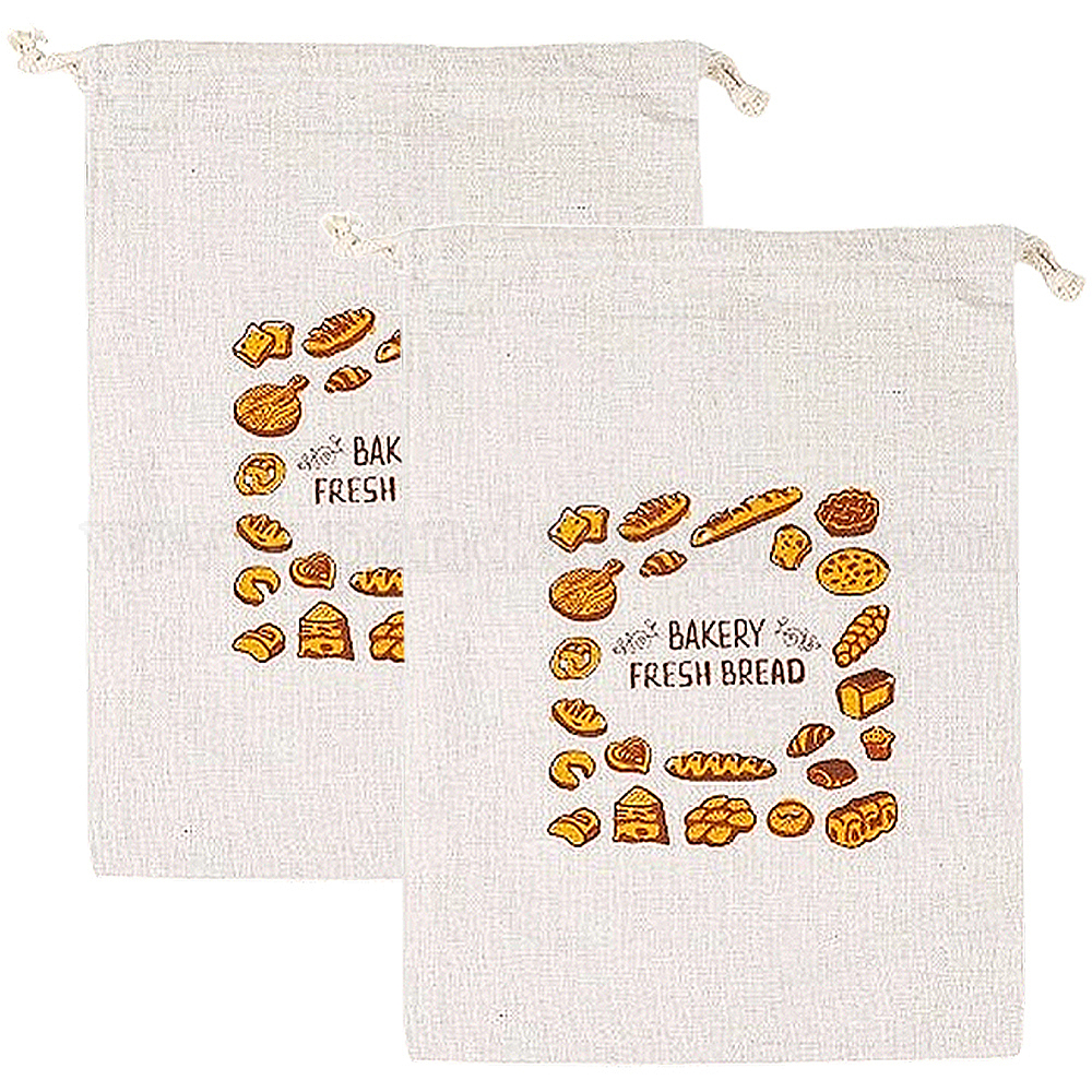 2шт. льняные мешочки для хлеба с принтом, шнурок сумки, прямоугольные (02WMPF)