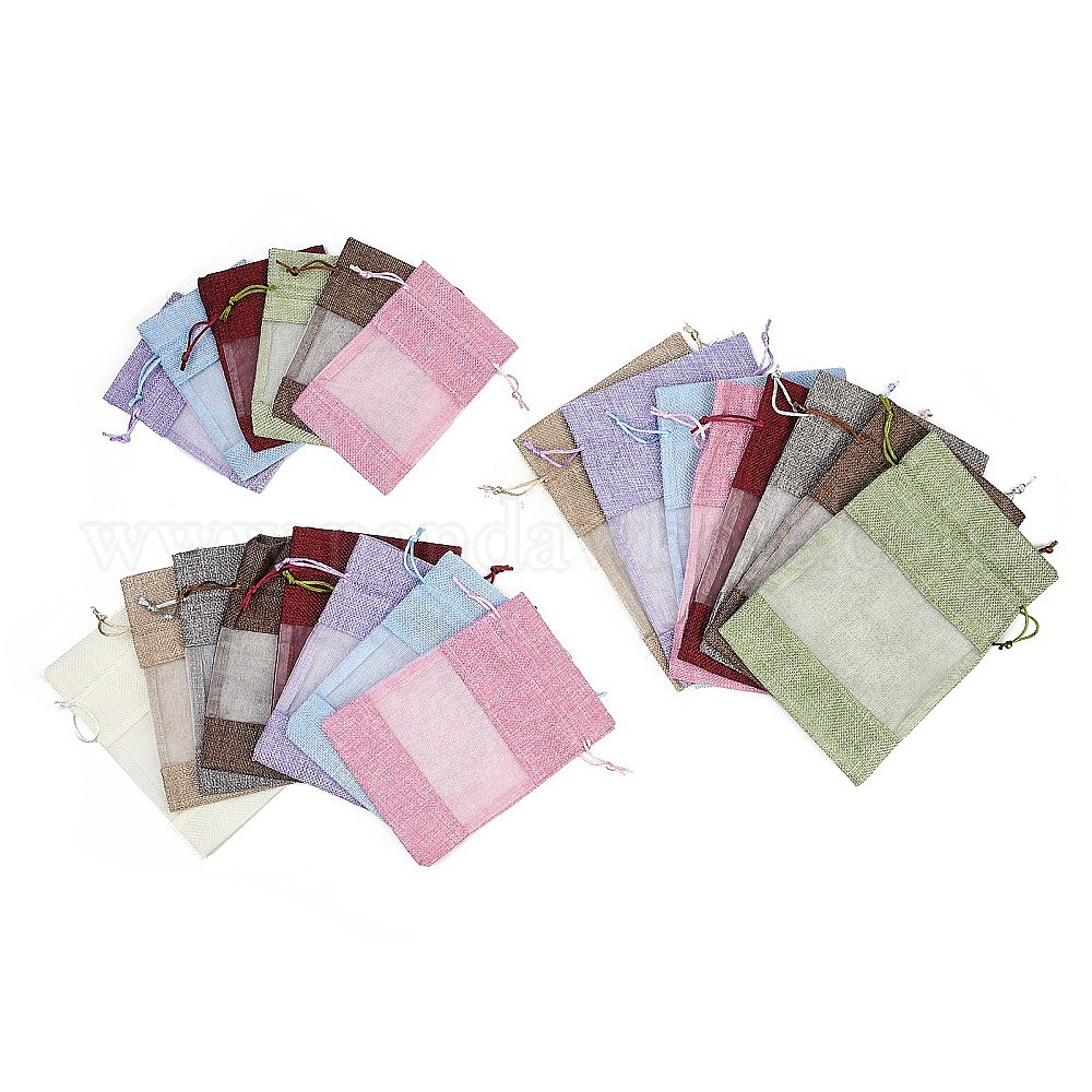 • пшеница Пакеты для упаковки в хлопок, шнурок сумки, с лентами из органзы, цвет пшеницы, 18.3x13x0.35 см