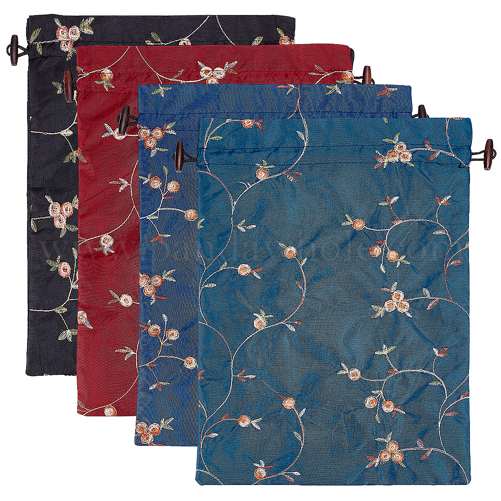 4 шт. 4 цвета вышитые цветы мешковина упаковочные мешочки сумки на завязках, на Рождество, свадьба и упаковка поделки, прямоугольные (03547N)