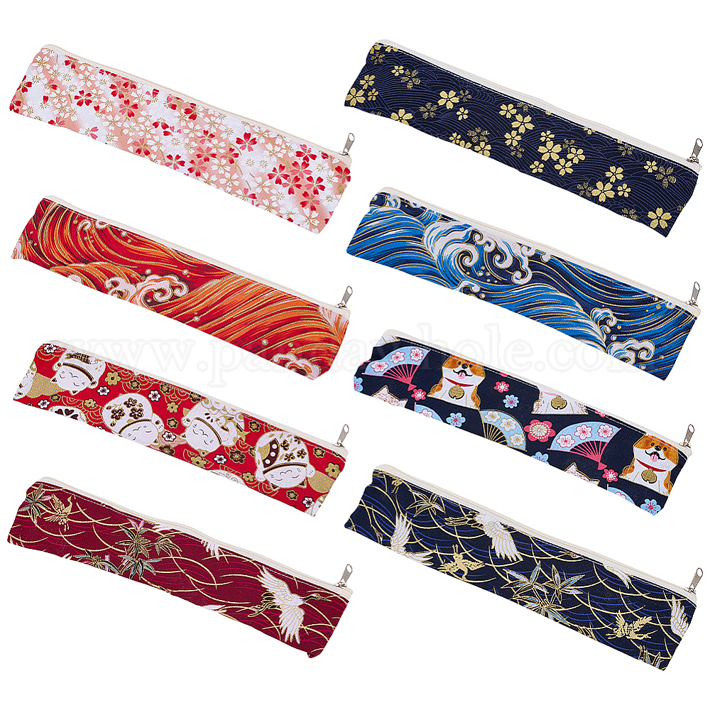 8шт. 8 стили японских хлопчатобумажных сумок на молнии, прямоугольник с рисунком