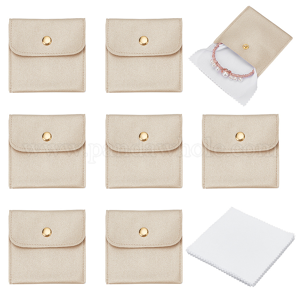 • Белый 12 Чехлы-конверты из искусственной кожи для ювелирных изделий, подарочные мешочки с 12 Квадратными салфетками для чистки очков, белые, 8x8x0.2~0.75 см
