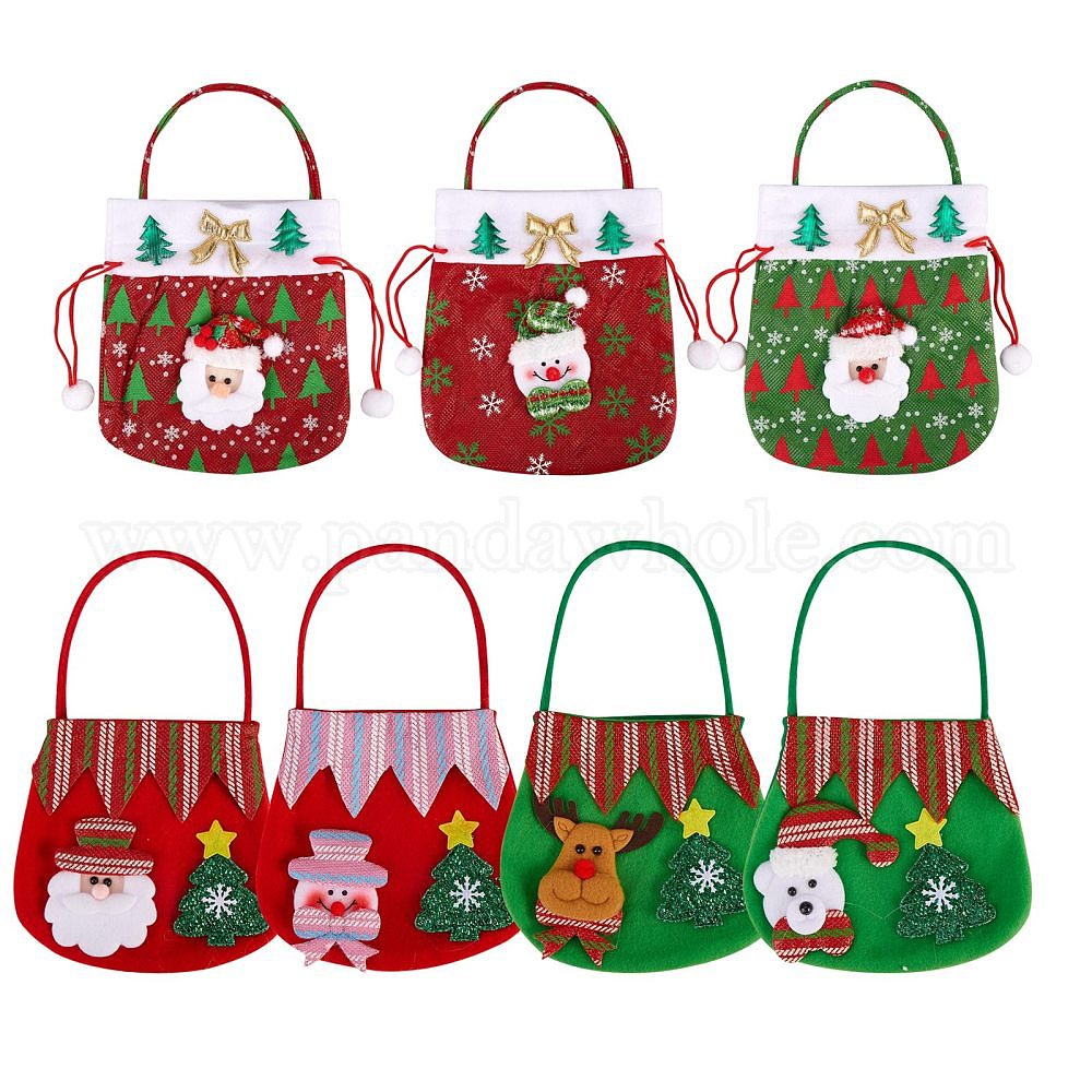 7 шт 7 стиль рождественские нетканые материалы конфеты мешки украшения, с ручкой, для рождественской вечеринки закуски подарочные украшения