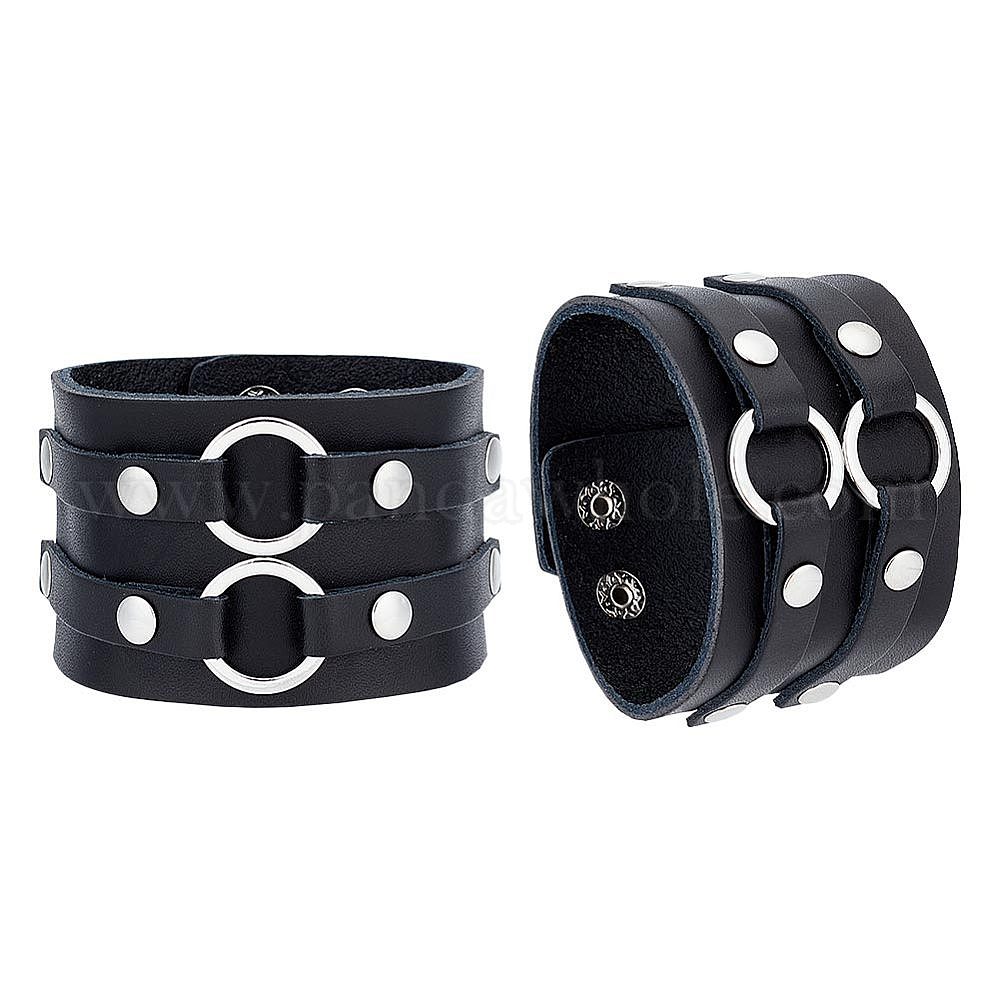 Браслет из шнура с полиуретановой обмоткой, широкий браслет из сплава с двойным кольцом и железной застежкой для мужчин и женщин